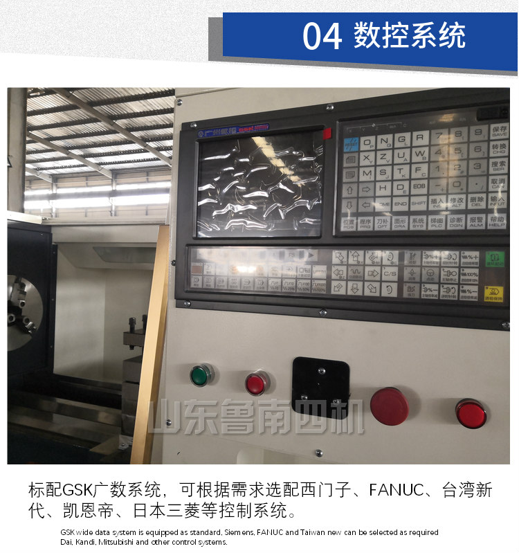 GSK980TB3(選配)數(shù)控系統(tǒng)和全數(shù)字交流伺服系統(tǒng),X、Z軸均采用半閉環(huán)控制,滾珠絲杠副采用C3級精密滾珠絲杠,電氣元器件均采用進(jìn)口或國產(chǎn)知名品牌。