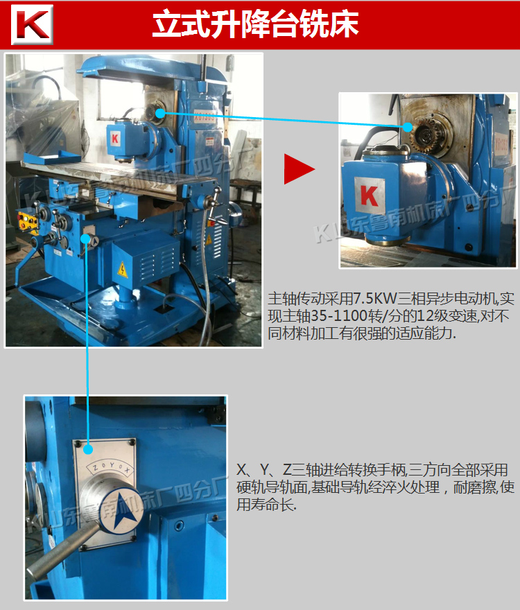 4.采用矩形導軌,鋼性好,精度高,操作簡單,維護方便。基礎導軌面及工作臺采用淬火處理,壽命長。