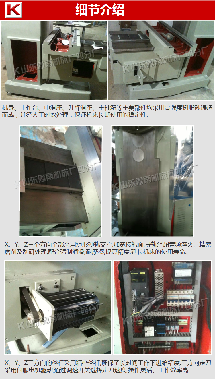 1.主電機功率7.5KW電機,對不同材料加工有很強的適應能力。