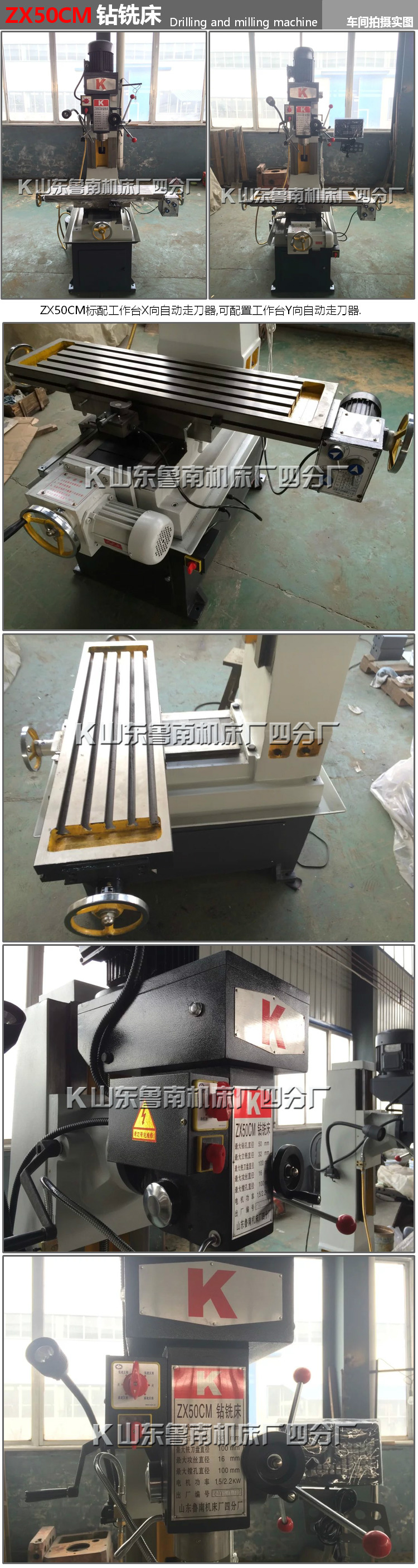 ※ 出廠ZX50C標配雙速電機,工作臺自動走刀器,(ZX50CM標配冷卻水泵、行程限位開關),可根據用戶需要加裝兩軸或三軸數顯光柵尺.